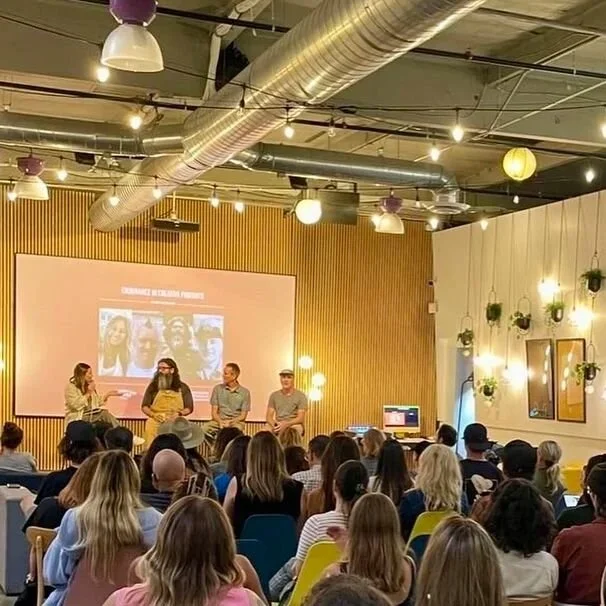 Melody stepped out from behind the scenes to moderate a panel of skate and surf industry legends for a local speaker series — drawing them into real and funny conversation that inspired a packed room to stay the course in their own creative pursuits, and highlighting the authentic impact each has cultivated along the way.
